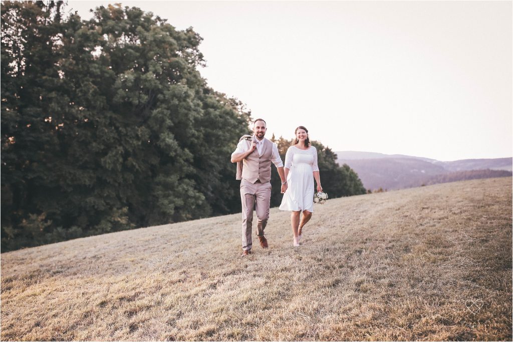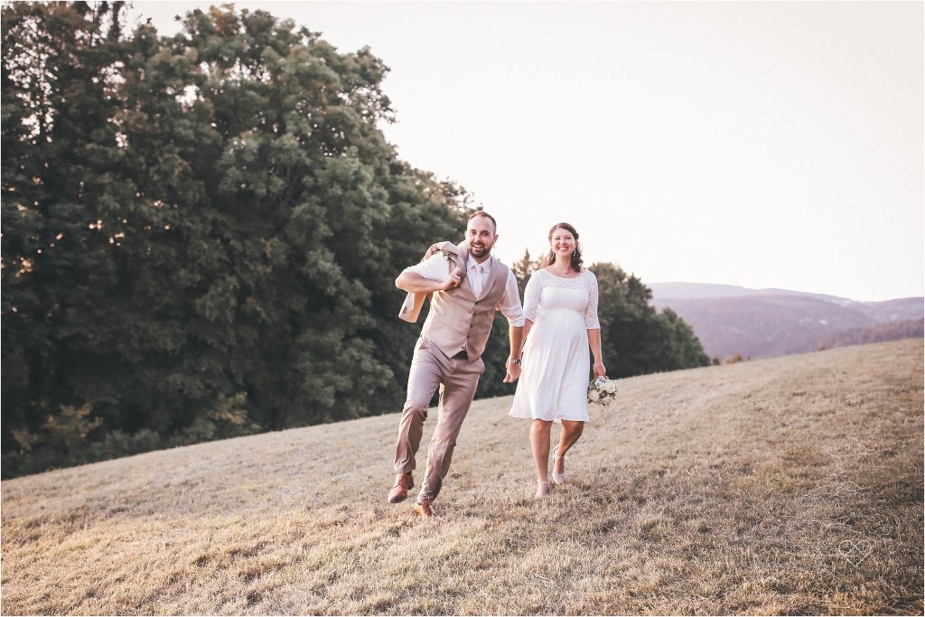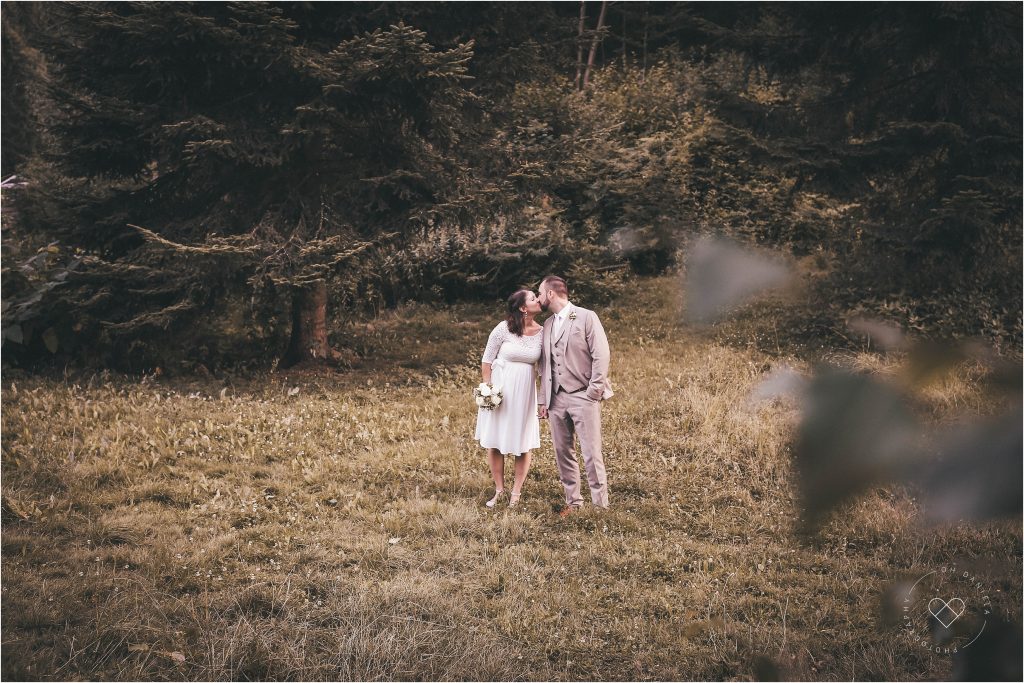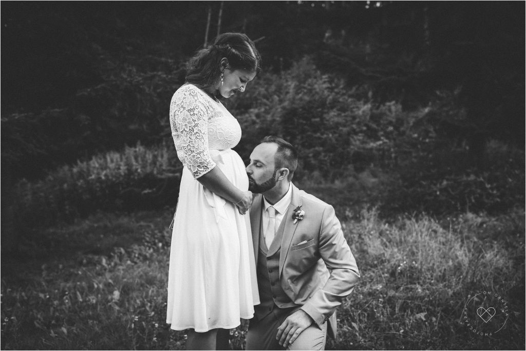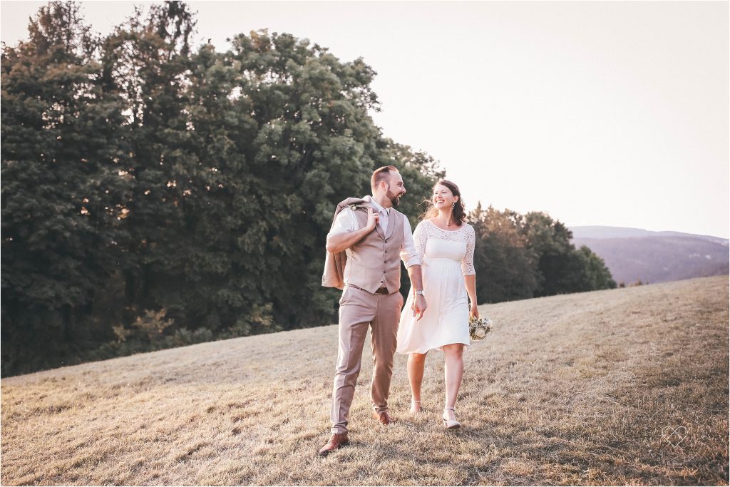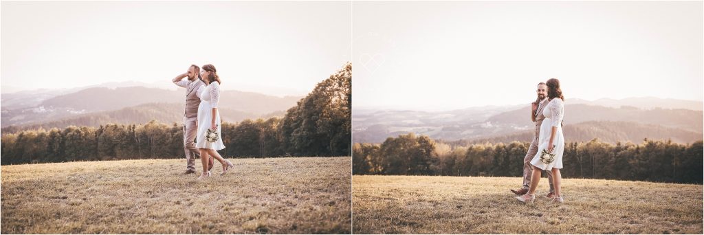 Und der Wettergott meinte es mit uns mehr als gut! Ein wahnsinnig schöner Sonnenuntergang, eine Anhöhe mit grandioser Aussicht, ein strahlendes Brautpaar (mit Babybauch) und beste Laune bei allen Beteiligten!
